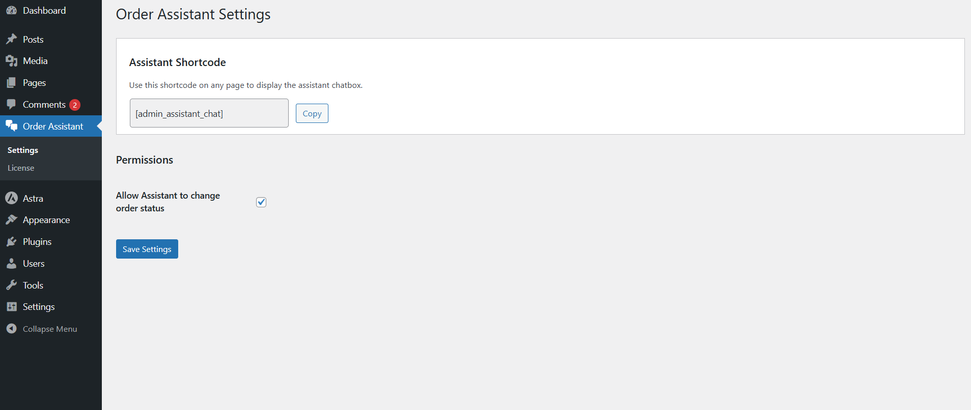 Step:3 – Open Plugin Setting , find Shortcode and allow assistant to change your store order status